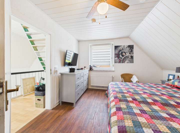 Auch technisch wurde die Immobilie fortlaufend modernisiert. Die Gaszentralheizung stammt aus dem Jahr 2014, der Warmwasserspeicher wurde erst 2024 erneuert, und das Dach erhielt bereits 2002 eine neue Eindeckung. Damit präsentiert sich das Haus nicht nur optisch gepflegt, sondern auch energetisch solide und zuverlässig.