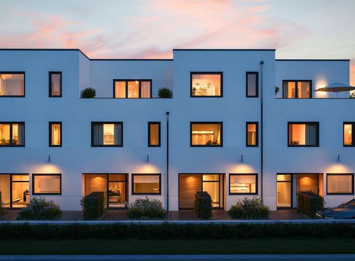Dieses Reihenhaus wird als hochwertiger Neubau mit einer Wohnfläche von ca. 140 m² realisiert. Es überzeugt durch seine zeitgemäße Bauweise, eine durchdachte Raumaufteilung und zukunftssichere Energieeffizienz. Dank der modernen Technik genießen Sie langfristig niedrige Betriebskosten und ein hohes Maß an Wohnkomfort. Die flexible Gestaltung macht es ideal für Familien ebenso wie für Paare oder Senioren.