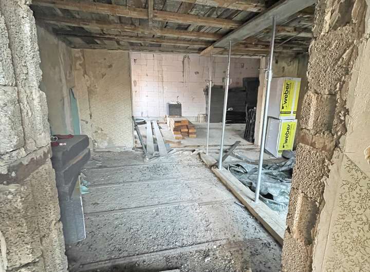 Das Objekt befindet sich im Rohbauzustand aufgrund eines abgelehnten Bauantrages (Umbau Wohnhaus – Ausbau DG mit Wohnraumerweiterung).