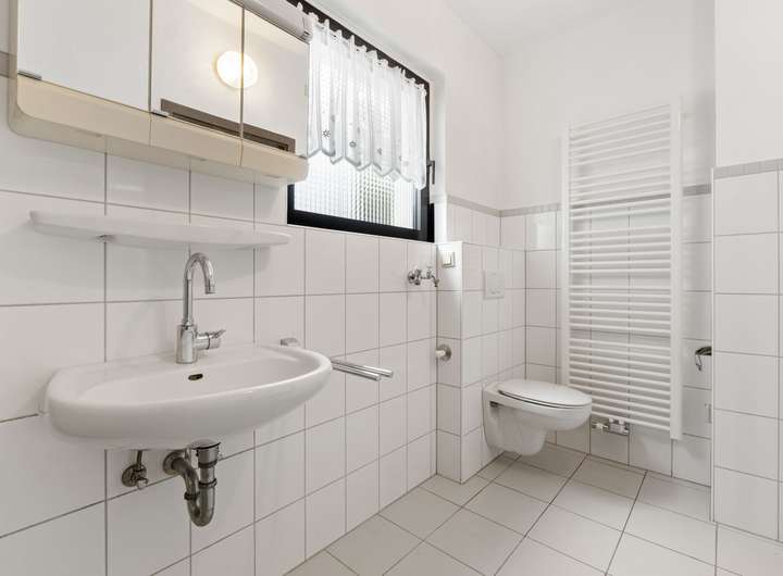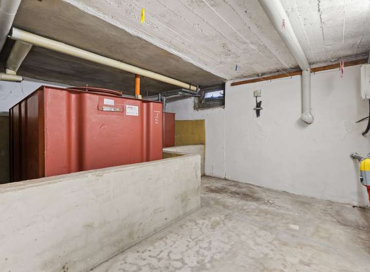 Der Keller des Hauses bietet drei weitere Räume, darunter einen Abstellraum, den Heizungsraum sowie einen Raum, in dem sich derzeit der Öltank befindet. Das Haus wird über Fernwärme beheizt