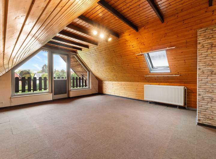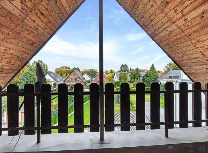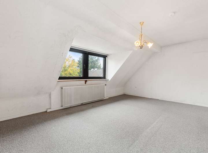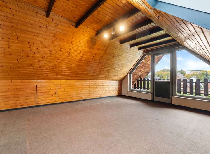 Im Dachgeschoss steht Ihnen ein weiteres Zimmer zur Verfügung, das sich hervorragend als Kinderzimmer, Gästezimmer oder Homeoffice eignet. In der Diele befindet sich zudem ein praktischer Einbauschrank für zusätzlichen Stauraum. Gegenüber liegt der ausgebaute Speicher, der Ihnen nicht nur weitere Nutzfläche bietet, sondern auch Zugang zu einem Balkon gewährt – ein schöner Ort, um an warmen Tagen den Blick über die Umgebung zu genießen.