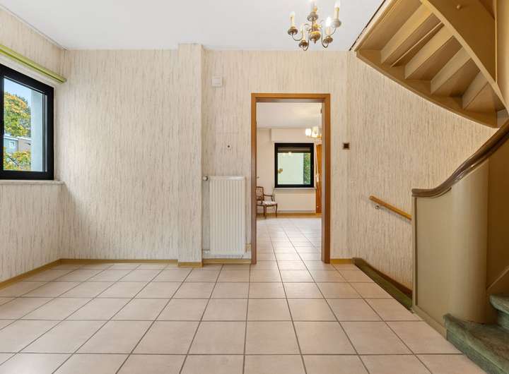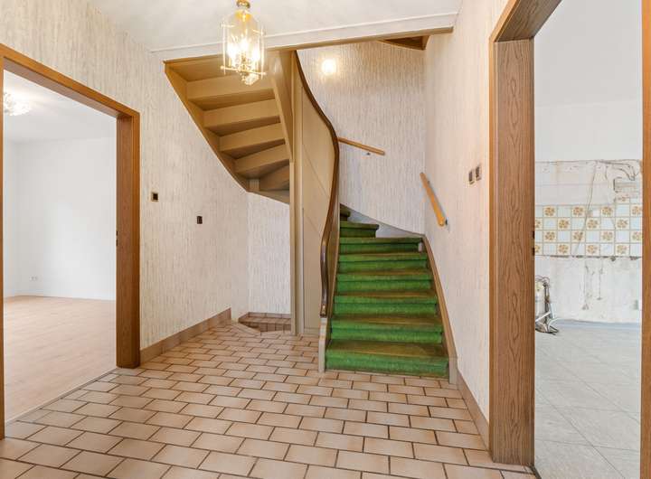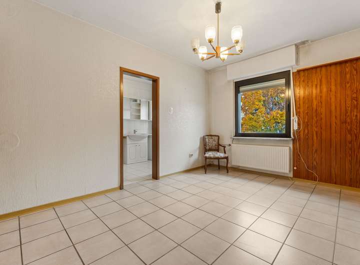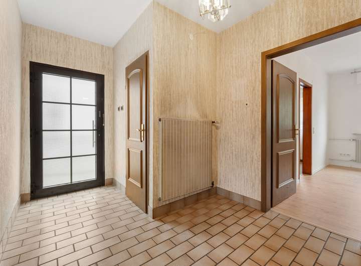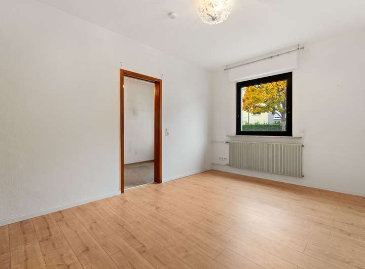 Schon beim Betreten des Hauses empfängt Sie eine großzügige Diele, von der aus alle Räume bequem erreichbar sind. Direkt auf der linken Seite befindet sich das Gäste-WC – ideal und gut erreichbar für Besucher. Einige Schritte weiter gelangen Sie in einen weiteren Raum, der sich flexibel nutzen lässt, beispielsweise als Schlafzimmer, Wohnbereich oder Esszimmer. Von hier aus führt ein angrenzendes Zimmer weiter, das sich hervorragend als Arbeitszimmer eignet und zusätzlichen Rückzugsraum bietet.