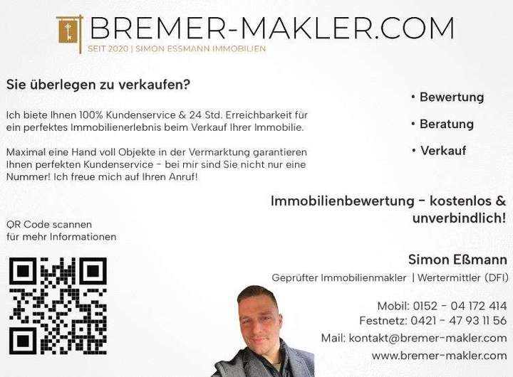Wir bieten Ihnen hier im Alleinauftrag diese erst 2024/2025 vollständig sanierte und sofort verfügbare Doppelhaushälfte in ruhiger Lage von Bremen Rekum (Blumenthal) an. Eine tolle Wohnlage in Wesernähe bietet viel Lebensqualität: Spaziergänge am Weserstrand oder Deich sowie in der nahegelegenen Natur. Das Grundstück hat eine Größe von 542 m², der Garten ist derzeit pflegeleicht angelegt und bietet viele Gestaltungsmöglichkeiten für all Ihre Ideen. Die Immobilie wurde kürzlich vollständig saniert / renoviert und ist direkt bezugsbereit! Ob Singles, Paare mit Platzbedarf oder Familie mit Kindern usw. - hier ist genug Platz für alle.