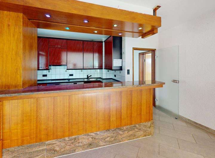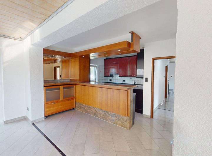 Die offene Einbauküche mit Theke verbleiben im Haus.
