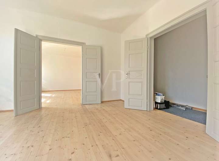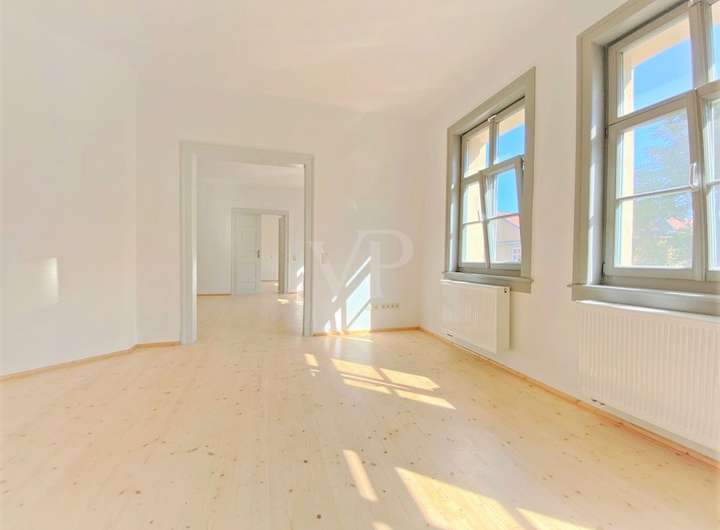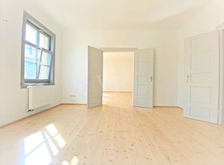 Die Wohnung befindet sich im 2. OG und entspricht dem klassichen und charaktervollen Altbaustil mit hohen Deckenwänden, großen Flügeltüren und einem Holzdielenboden.