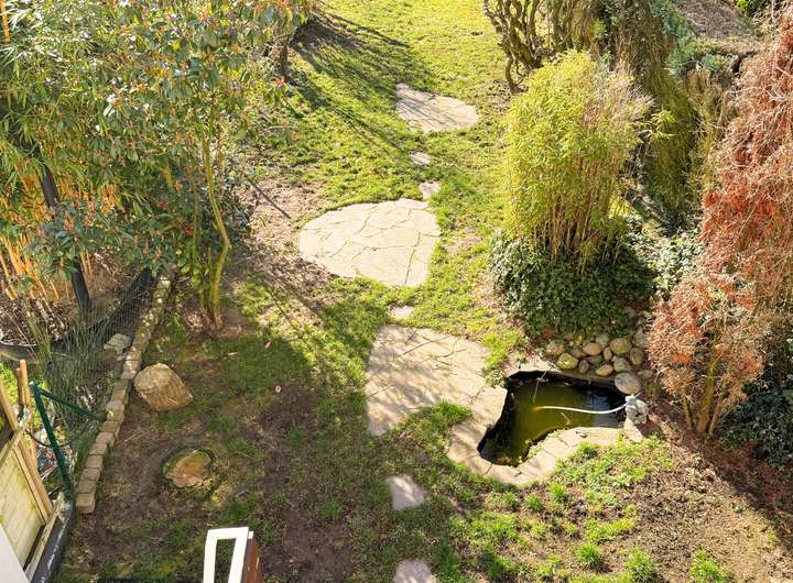 Das Erdgeschoss bietet einen offenen Wohn-Essbereich mit schönem Blick in den Garten. Im Obergeschoss befinden sich neben einem geräumigen Schlafzimmer mit direktem Zugang zum sonnigen Balkon zwei weitere Zimmer sowie ein Dusch- und Wannenbad. Das lichtdurchflutete Dachgeschoss besticht mit seinen offenen 40 m² Wohnfläche, die vielfältig genutzt werden können. Das Untergeschoss überzeugt neben einem Waschkeller und einem Abstellraum auch mit einem großzügigen Hobbyraum, der über eine Außentreppe direkten Zugang zum Garten bietet. Abgerundet wird das Angebot durch eine Garage, die sich am Ende der Straße befindet.