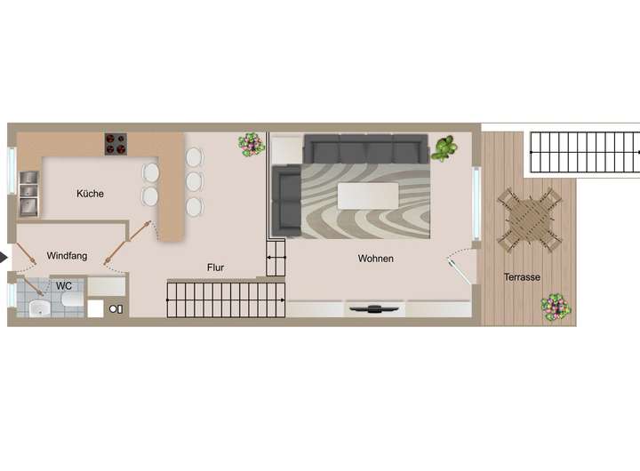 ++ Terrasse (EG) + Garten inkl. direktem Zugang vom Keller