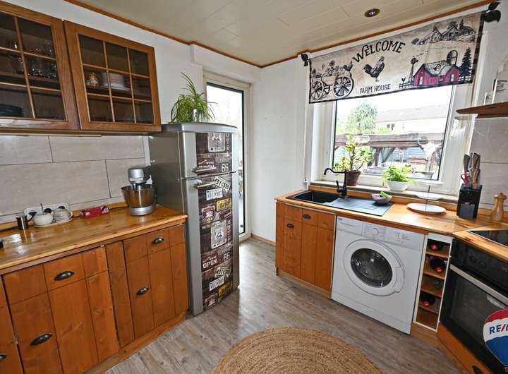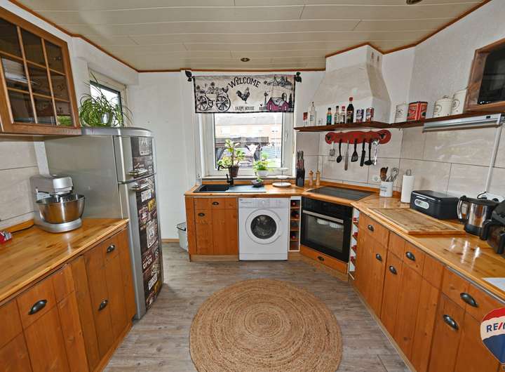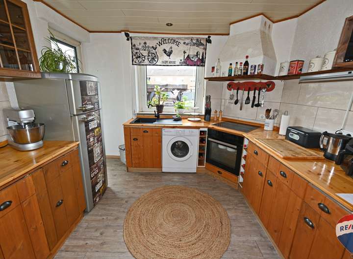 Im Inneren des Hauses erwarten Sie drei gemütliche Schlafzimmer, ideal für Familien oder Gäste, und ein modernes Bad, das erst vor 6-7 Jahren komplett erneuert wurde. Für zusätzlichen Komfort sorgt ein praktisches Gäste-WC. Die großzügigen Wohnräume sind perfekt gestaltet für ein harmonisches Familienleben.