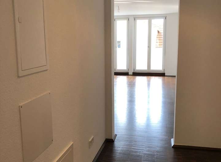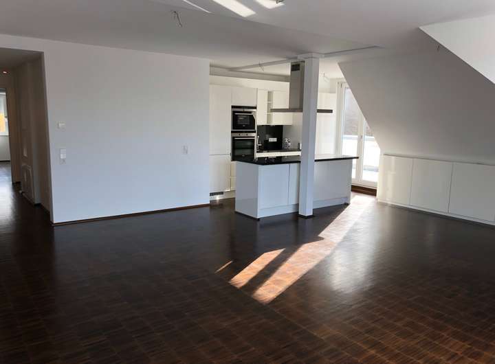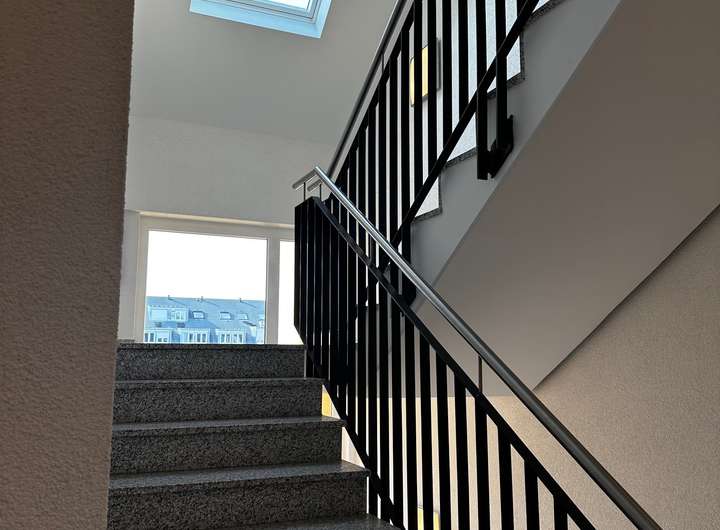 Die 4,5 Zimmer DG Wohnung befindet sich im DG, barrierefrei erreichbar über einen Aufzug im Treppenhaus.