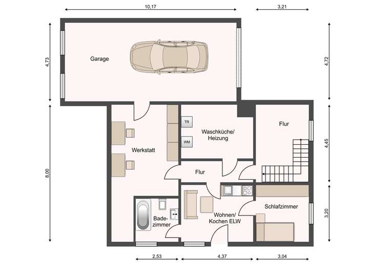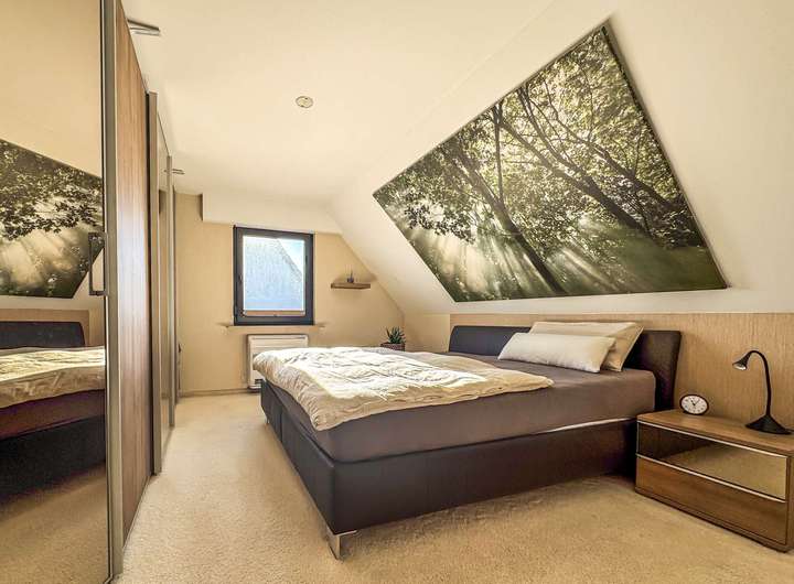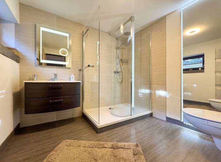 Auch der Untergeschossbereich überzeugt mit durchdachtem Raumkonzept: Ein weiteres, modernes Badezimmer mit großer Dusche, ein Schlafzimmer sowie ein Wohnbereich mit Ausgang nach draußen schaffen ideale Bedingungen für Gäste, Familienmitglieder oder eine Einliegerwohnung. Ergänzt wird dieser Bereich durch einen großen Hauswirtschaftsraum, eine Werkstatt, sowie eine geräumige Garage.