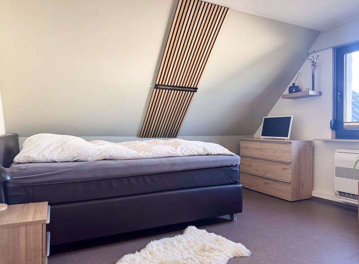 Zudem gibt es zwei Schlafzimmer sowie ein aktuell als Büro genutztes Zimmer mit Glaswand, das für besonders viel Licht sorgt.