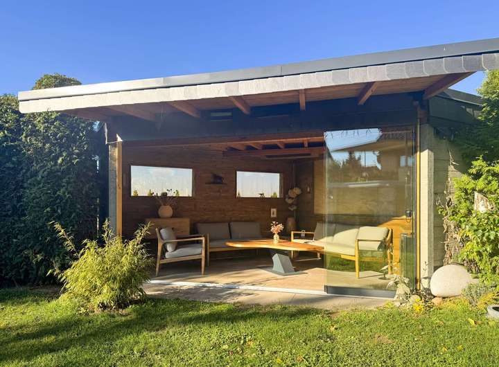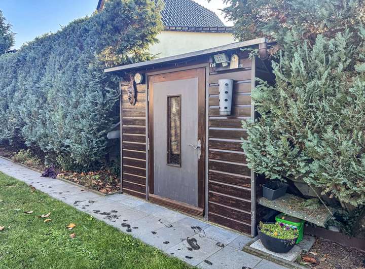 Ein weiteres Highlight: Das 2024 errichtete, stilvolle Gartenhaus bietet den perfekten Rückzugsort für gemütliche Abende bei einem Glas Wein. Zusätzlich gibt es einen Schuppen für Geräte und Stauraum.