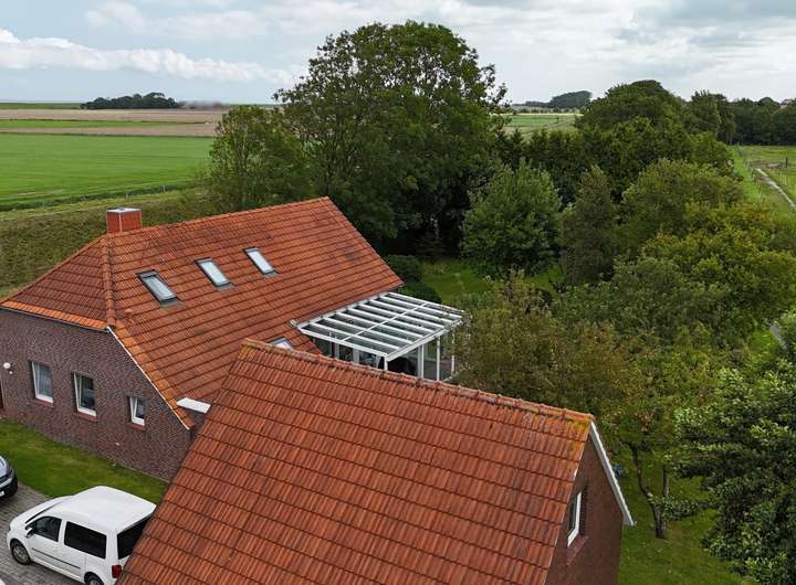 Nordseeluft pur schnuppern Sie bei dieser Immobilie jeden Tag. Mit Blick gen weite felder oder über den Deich spüren Sie das ostfriesische Leben.
