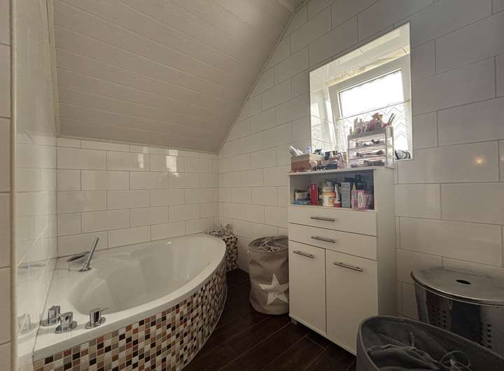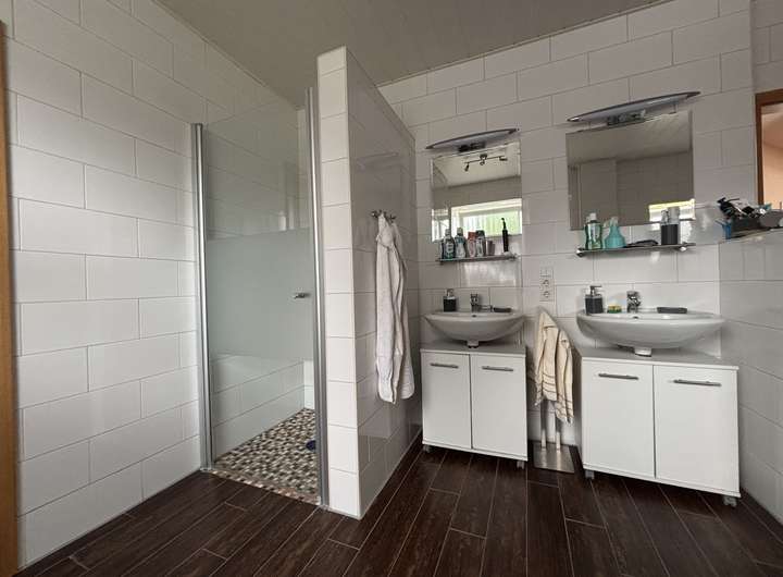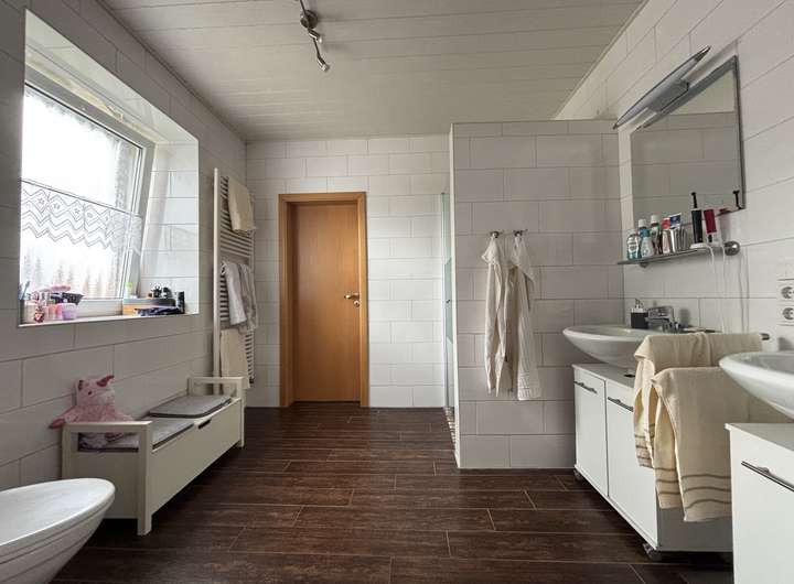 Das Badezimmer weist ebenso eine Fußbodenheizung auf, wie der Wintergarten. Die Heizungsanlage stammt aus 2007.
