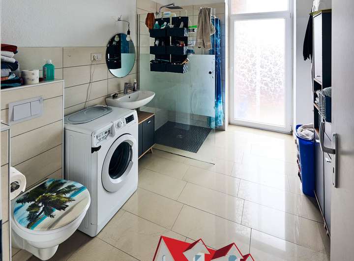 Die Immobilie verfügt über vier Badezimmer mit Fenster und einer Dusche. Zudem sind Einbauküche vorhanden. Die Bodenbeläge in den Wohnung sind aus Fliesen, Laminat, PVC und Vinyl. Die Qualität der Ausstattung wird als normal eingestuft.