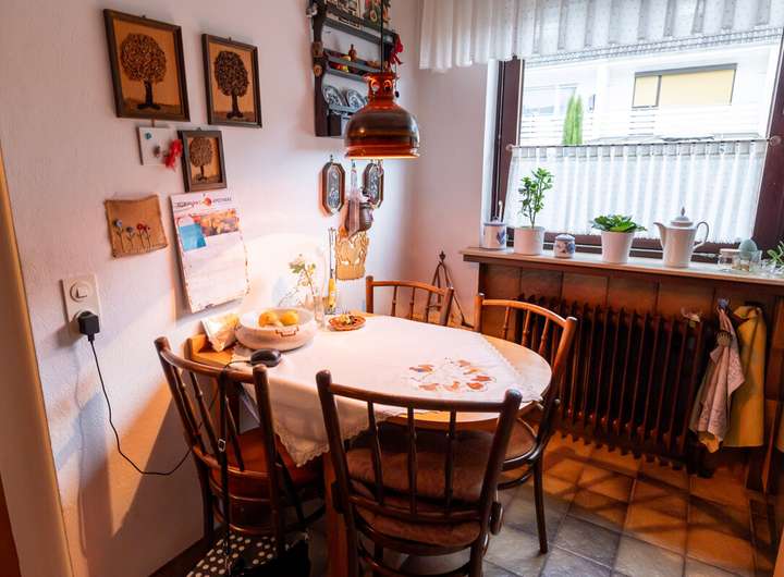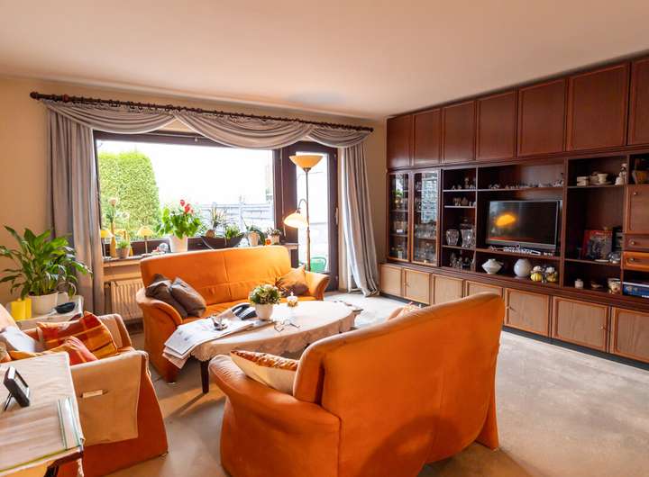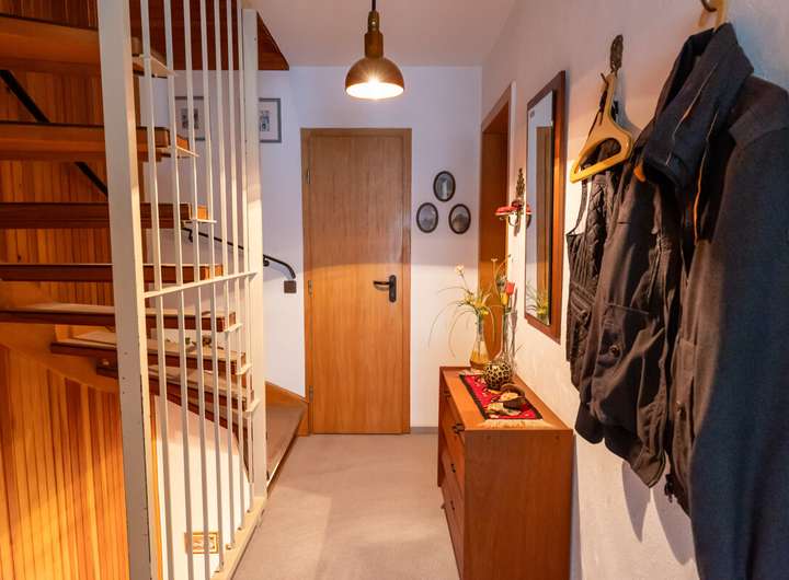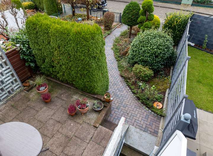 Dieses pfiffig geschnittene Reihenmittelhaus präsentiert sich in einer familienfreundlichen Lage und bietet mit insgesamt 5 Zimmern viel Platz für verschiedene Lebenssituationen. Im Erdgeschoss befindet sich ein gemütlicher Wohnbereich mit Zugang zur sonnigen Terrasse, die dank Markise auch an warmen Tagen angenehmen Schatten spendet. Ein Gäste-WC mit Fenster ergänzt das Raumangebot im Erdgeschoss. Das Obergeschoss umfasst zwei gut geschnittene Zimmer sowie ein modernisiertes Duschbad (ca. 2003) und den Zugang zum Balkon, der direkt vom Schlafzimmer aus betreten werden kann. Das Dachgeschoss hält zwei weitere Räume bereit und eignet sich ideal für Kinder, Homeoffice oder Hobby. Ein Vollkeller mit Hauswirtschaftsraum und praktischem Außeneingang sorgt für reichlich Stauraum und Flexibilität; zusätzlich steht ein Zugang zum Dachbodenbereich für weitere Abstellfläche zur Verfügung. Rollläden, Glasfaseranschluss sowie eine gewartete Gasheizung (ca. 2002) mit Warmwasserspeicher runden dieses attraktive Angebot ab.