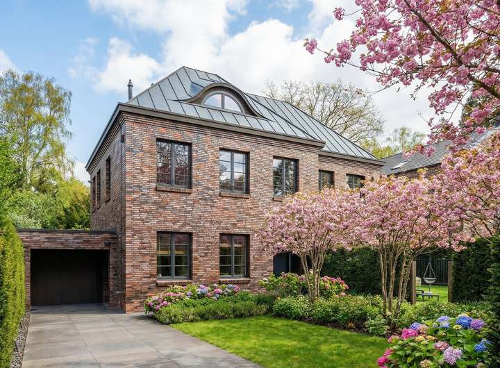 Diese außergewöhnliche Architektenvilla verkörpert Wohnkultur auf höchstem Niveau – ein Haus, das architektonische Präzision, erstklassige Materialien und eine bis ins Detail durchdachte Planung zu einem harmonischen Gesamtwerk verbindet. Auf einem sonnigen Süd-West-Grundstück in einer der begehrtesten Adressen Blankeneses errichtet, präsentiert sich dieses Anwesen als seltene Gelegenheit für Liebhaber kompromissloser Bauqualität. Der massive Baukörper aus edlem Wittmunder Klinker, ergänzt durch stilvolle Holz-Sprossenfenster und ein anthrazitfarbenes Zinkdach, verleiht dem Gebäude seine zeitlose Eleganz und eine beeindruckende Wertbeständigkeit. Bereits beim Betreten offenbart sich der außergewöhnliche Anspruch: Das großzügige, lichtdurchflutete Treppenhaus fungiert als architektonisches Herzstück und verbindet die vier Ebenen Ihres neuen Zuhauses auf elegante Weise. Hochwertige Bodenbeläge, prägnante Raumhöhen, moderne Lofttüren und eine geschwungene, handwerklich perfekt gearbeitete Treppe setzen exklusive Akzente, die man sieht – und spürt. Der über 80 m² große Wohn- und Essbereich mit angrenzender Küche bildet das kommunikative Zentrum des Hauses. Ein eleganter Kamin, raumhohe Fensterfronten und der direkte Zugang zur weitläufigen Terrasse unterstreichen das Zusammenspiel von Innen- und Außenraum. Der Garten ist hochwertig angelegt und schafft einen privaten Rückzugsort, der zu jeder Jahreszeit besondere Momente verspricht. Die klare Raumstruktur überzeugt mit exzellenter Alltagstauglichkeit: Vier gleichwertige Kinderzimmer mit eigenem, großzügigen Bad bieten ideale Voraussetzungen für Familien. Eine separate Einliegerwohnung eröffnet zusätzliche Flexibilität – perfekt als Gästebereich, als Homeoffice oder für ein Au-pair. Das Dachgeschoss gehört ganz den Eltern: Über 60 m² privater Wohnkomfort mit Schlafbereich, Ankleide, luxuriösem Bad und einer beeindruckenden Dachterrasse in perfekter Sonnenausrichtung schaffen einen Rückzugsort, der seinesgleichen sucht. Technisch erfüllt die Villa höchste Standards: Moderne Gasheizung mit Wärmepumpe, Lüftungsanlage mit Wärmerückgewinnung, Fußbodenheizung, intelligente Verschattungssysteme, Rollläden, SmartHome, Alarmanlage mit Videoüberwachung sowie unsichtbar integrierte Lautsprecher stehen für zukunftsorientierte Wohnqualität. Eine Klimaanlage im Elternbereich sowie eine Garage mit direktem Zugang runden das außergewöhnliche Komfortniveau ab. Unser Fazit: Diese Villa ist mehr als ein Zuhause – sie ist ein Statement.