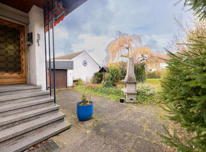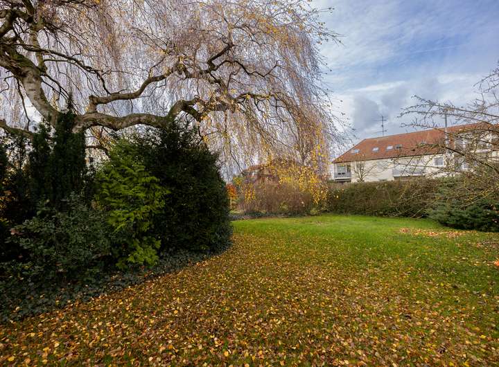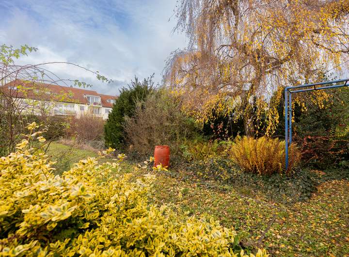 Hier angeboten wird ein charmantes Einfamilienhaus mit einem großzügigen, von Bäumen gesprenkelter Garten. Der weitläufige Außenbereich bietet viel Platz zum Spielen, Entspannen oder für den eigenen Gemüseanbau.