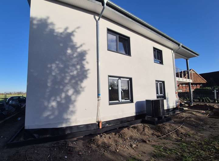 Zur Vermietung stehen zwei Wohnungen in einem modernen Zweifamilienhaus im Erstbezug mit je einer Wohnfläche von ca. 155 m², verteilt auf zwei Etagen. Das im Januar 2026 voraussichtlich fertiggestellte Haus überzeugt durch eine energieeffiziente Bauweise und eine hochwertige Ausstattung.