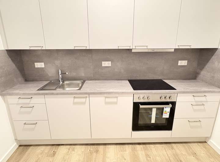 Küche: Küchenzeile mit Herd (neu), Ofen (neu) und Kühlschrank