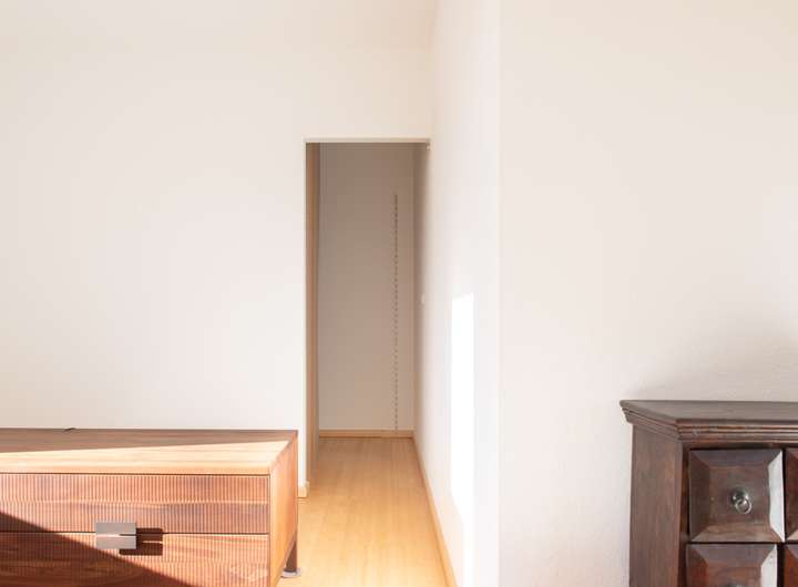 An den Wohnbereich grenzt das Schlafzimmer mit ca. 15,87 m², das sich angenehm zurückgezogen präsentiert und mit der angrenzenden Ankleide von ca. 4,90 m² einen ruhigen, komfortablen Rückzugsort darstellt. Durch die räumliche Einheit von Schlafraum und Ankleide entsteht ein funktionaler Komfort, der den Tagesablauf auf elegante Weise unterstützt.