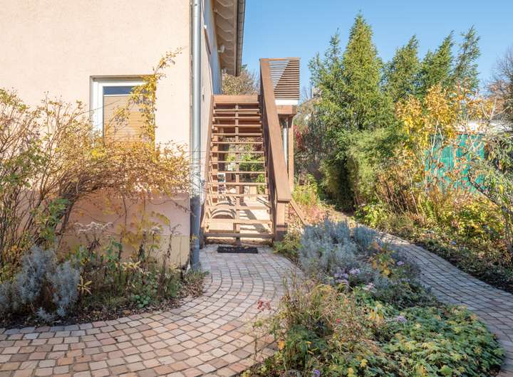 Sie erreichen Ihr neues Zuhause mit ca. 188 m² Wohnfläche über eine ruhige Sackgasse, die nahezu ausschließlich von Anliegern genutzt wird. Im Einfahrts- und Zugangsbereich können nicht nur Fahrräder bequem abgestellt werden, sondern auch der Wocheneinkauf lässt sich komfortabel direkt vor dem Hauseingang oder in der angrenzenden Garage aus dem Pkw entladen.