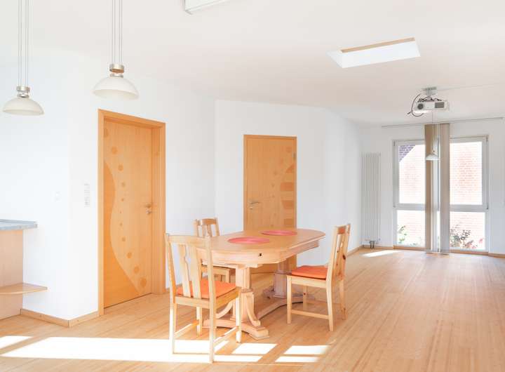 Ob beim Sonnen auf dem herrlich großen Balkon, beim Beisammensein im offen Wohn-, Ess- und Kochbereich oder beim Aktivsein im lichtdurchfluteten Atelier mit bis zu ca. 3,90 m Deckenhöhe. Hier können Sie in privater Atmosphäre abschalten und dem Alltagsstress entkommen.