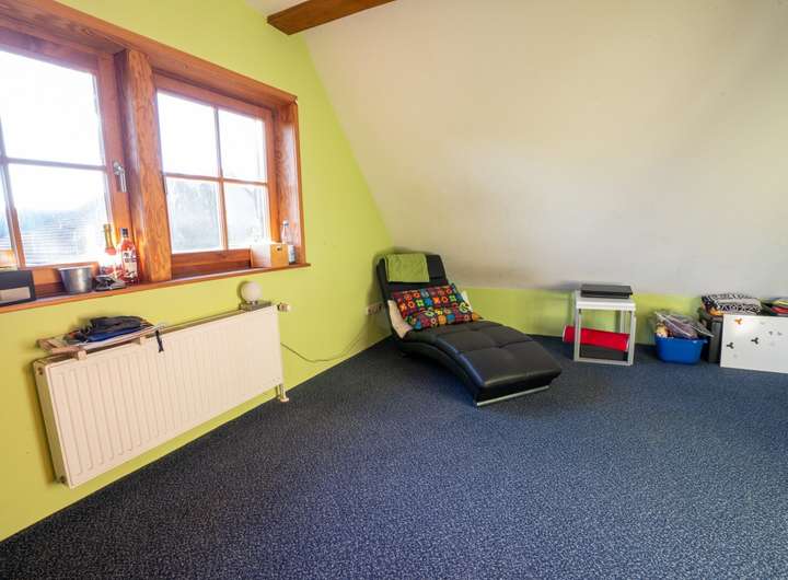 Das Haus verfügt über vier helle Schlafzimmer, eine offene Küche mit Einbauküche, einen großzügigen Wohn- und Essbereich, ein modernes Badezimmer mit Wanne und großer Dusche, ein Gäste-Bad sowie einen geräumigen, ausgebauten Dachboden.
