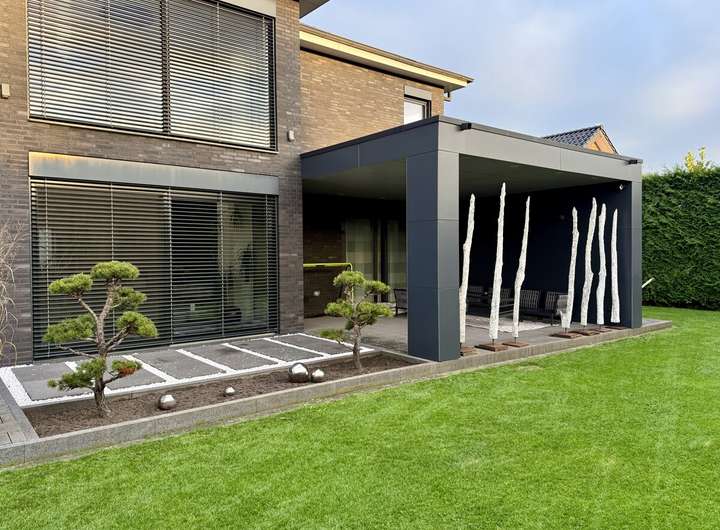 + 3,5 m hohe (dauergrüne) Hecke für Privatsphäre
