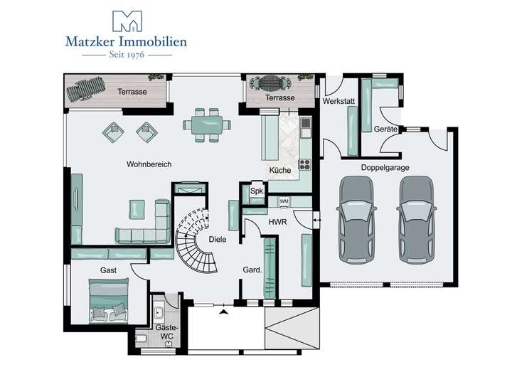 + Doppelgarage mit direktem Zugang und zusätzlichem Stauraum