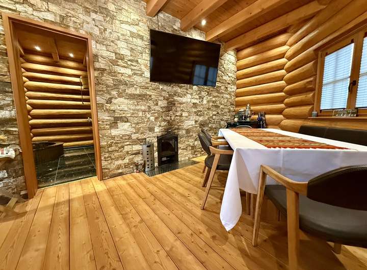 + Freistehendes Saunahaus mit Küchenzeile, Ruheraum, hochwertiger Sauna, separater Dusche und Tauchbecken
