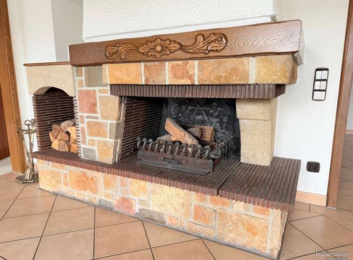Der zentrale Wohnbereich bildet das Herzstück des Hauses: Ein stilvoller Kamin sorgt für Wärme und Gemütlichkeit und macht diese Zone zu einem idealen Ort für entspannte Stunden. Aktuell befindet sich auf dieser Ebene ein geräumiges Schlafzimmer, das Ruhe und Rückzug bietet.