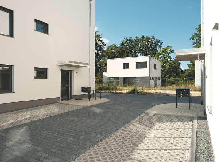 Inmitten einer idyllischen Umgebung von Ein- und Zweifamilienhäusern erheben sich hier zwei moderne Stadtvillen mit insgesamt 10 Eigentumswohnungen mit ansprechender Architektur.