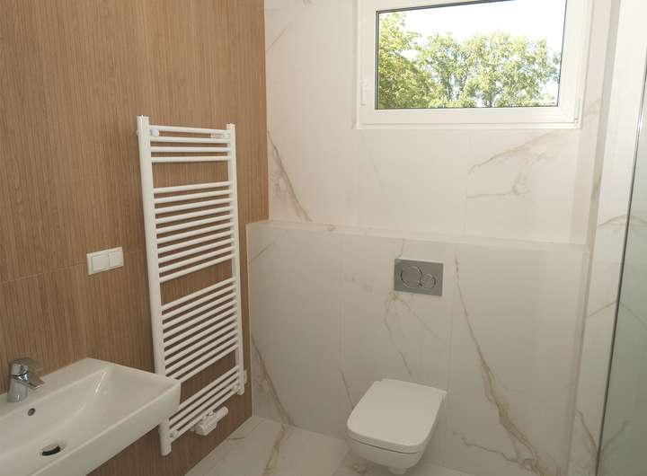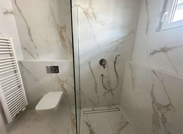 - Großformat-Fliesen in Marmor-Design
