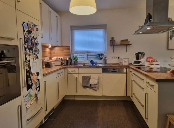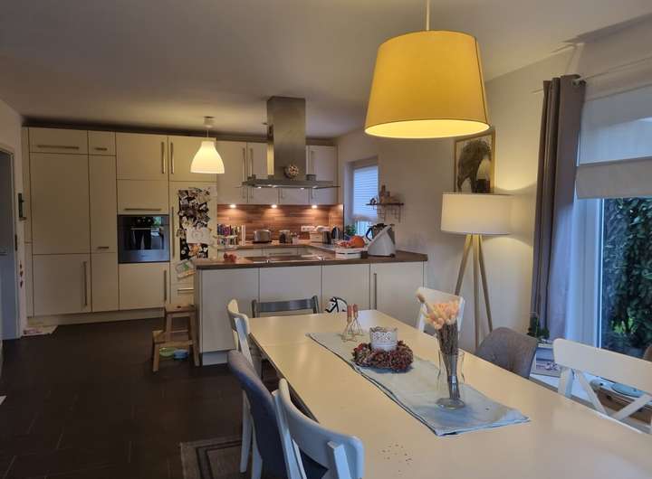 Offener Küchenbereich mit Einbauküche und ausreichend Platz für einen Esstisch.
