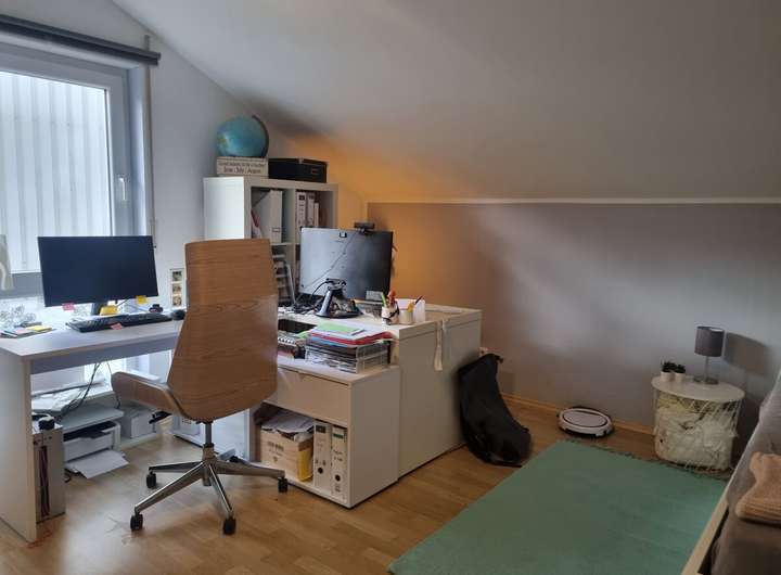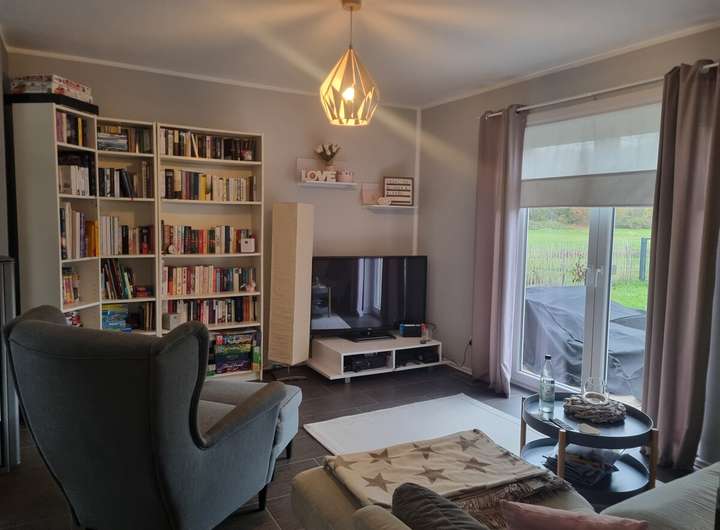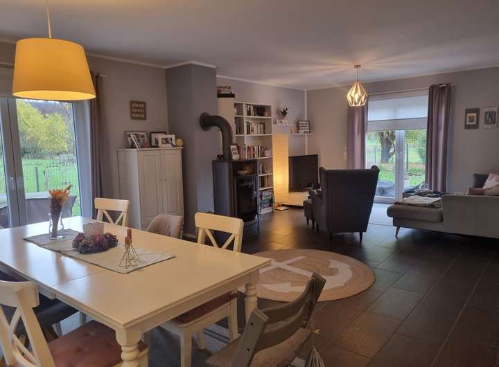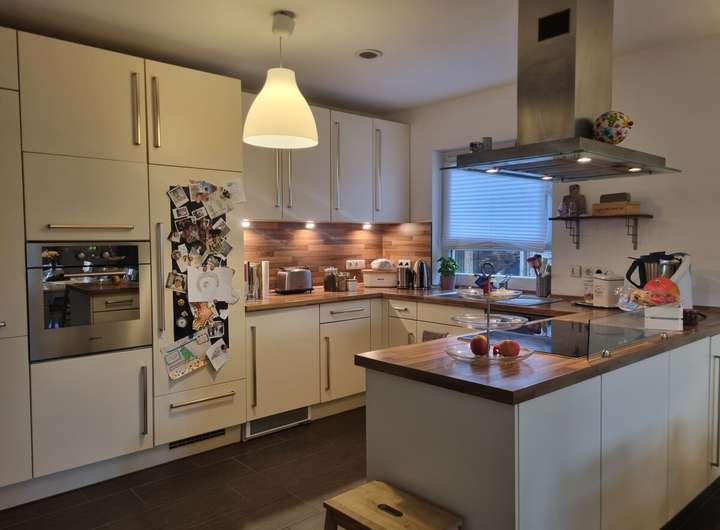 Dieses freistehende und moderne Energiesparhaus liegt in einer ruhigen, familienfreundlichen Lage und bietet unverbauten Blick ins Grüne. Die klare Architektur verbindet helles Wohnen mit praktischer Raumaufteilung. Im Obergeschoss finden Sie drei Schlafzimmer, ideal für Familie, Gäste oder Home-Office. Das Erdgeschoss überzeugt mit einem großzügigen Wohn- und Essbereich, der Nähe zum Garten und viel Raum für gemeinsame Stunden.