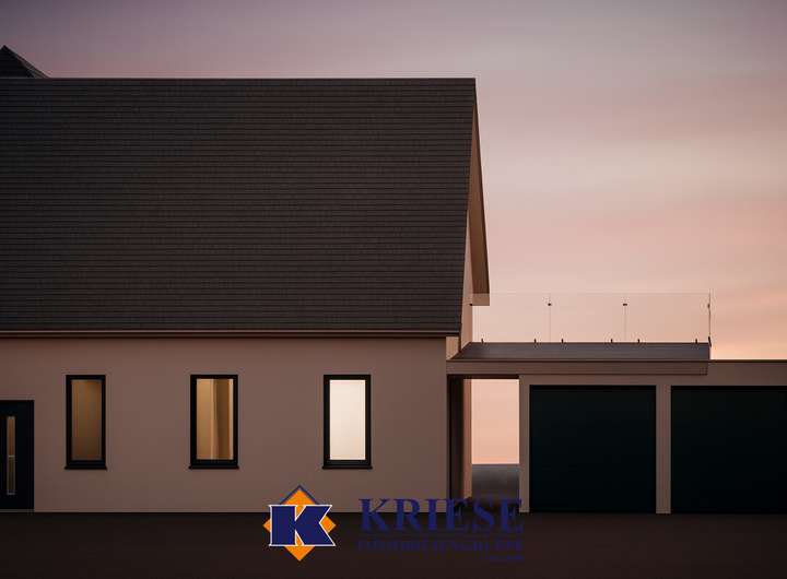 Uns liegen mehrere Planungsvorschläge zur Bebauung vor, die bereits bei der Gemeinde im Bauamt vorgelegt und akzeptiert wurde. Die Bebauung kann beliebig nach eigenen Wohnbedürfnissen gestaltet werden und lässt jegliche Wünsche offen. Die GFZ von insgesamt 0,4 bietet eine Wohnfläche von bis zu 150 m². Die Dachform entspricht einem klassischen Satteldach mit 48° Neigung.