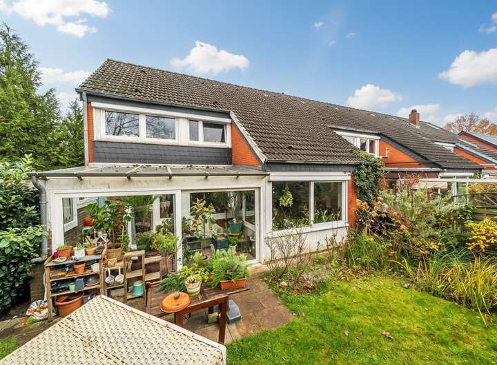 Charmantes Reihenendhaus, welches 1971 errichtet wurde und sich über Erdgeschoss, Dachgeschoss sowie einen Spitzboden erstreckt. Darüber hinaus gehören zum Objekt eine Garage, die zusätzliche Nutzfläche bietet, sowie ein nach Südwesten ausgerichteter Garten, der optimale Sonnenverhältnisse bietet.