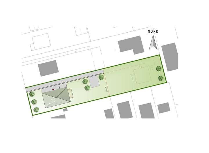 Der hintere Grundstücksteil mit ca. 800 m2 steht zum Kaufpreis von 645.000 € zum Verkauf. Er ermöglicht ein Einfamilienhauses mit bis zu ca. 210 m2 Wohn- und Nutzfläche auf drei Etagen inklusive Kellergeschoss – perfekt für alle, die Ruhe und Privatsphäre suchen.