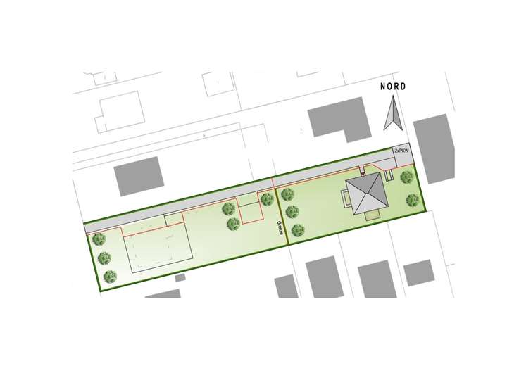Der hintere Grundstücksteil mit ca. 800 m2 steht zum Kaufpreis von 645.000 € zum Verkauf. Er ermöglicht ein Einfamilienhauses mit bis zu ca. 210 m2 Wohn- und Nutzfläche auf drei Etagen inklusive Kellergeschoss – perfekt für alle, die Ruhe und Privatsphäre suchen.