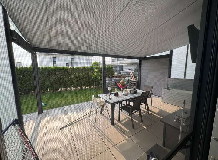 Die Wohnfläche von ca. 130 m² verteilt sich auf durchdacht geplante Räume, die dank der Fußbodenheizung mit Einzelraumregelung stets ein angenehmes Wohnklima bieten.
