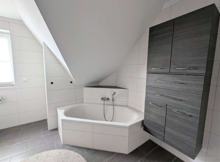 * Böden: Erdgeschoss, Flur, Treppe & DG-Bad mit hochwertigen Fliesen, Schlafzimmer mit