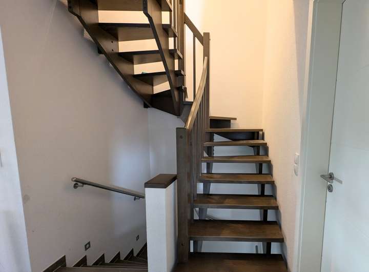 * Massive Holztreppe zum ausgebauten Dachgeschoss