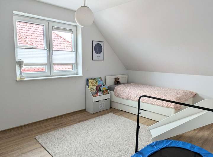 Diese neuwertige Doppelhaushälfte aus dem Jahr 2016 präsentiert sich in hervorragendem Zustand und bietet mit einer Wohnfläche von 133 m², verteilt auf 5 Zimmer, ein ideales Zuhause für Familien, Paare oder alle, die komfortables Wohnen in zentraler Lage suchen. Das Grundstück umfasst 376 m² und bietet sowohl im Innen- als auch im Außenbereich viel Platz zum Wohlfühlen.