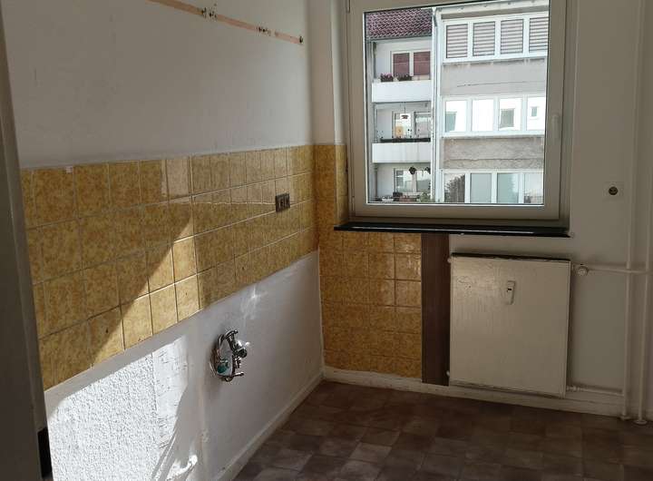 Die 3-ZKB-Wohnung ist mit hellem CV-Boden in Laminatoptik verlegt. Die Küche und das Tageslichtbad mit Dusche sind hell gefliest.