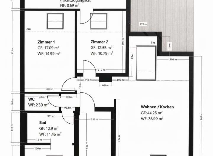 Die Wohnung verfügt über drei geräumige Zimmer, die Platz bieten, um persönliche Wohnträume zu verwirklichen. Die lichtdurchfluteten Räume strahlen eine angenehme Atmosphäre aus und laden zum Entspannen und Wohlfühlen ein.
