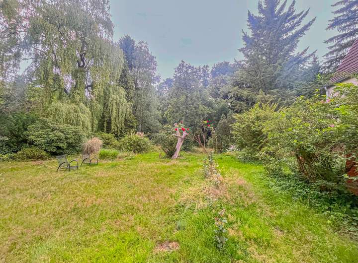 Der weitläufige Garten ist ein Paradies für Naturliebhaber und bietet vielfältige Möglichkeiten zur Gestaltung. Drei Gartenhäuschen stehen für Hobby, Fahrrad oder Geräte zur Verfügung.