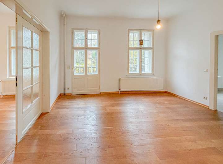 Beheizt wird das Haus über eine zentrale Gastherme. Es wird unmöbliert vermietet und bietet Ihnen damit viel Raum zur persönlichen Entfaltung. Die monatliche Kaltmiete beträgt 3.200 €, hinzu kommen ca. 200 € für Heiz- und Nebenkosten. Die Kaution in Höhe von zwei Nettokaltmieten kann in drei Raten gezahlt werden.