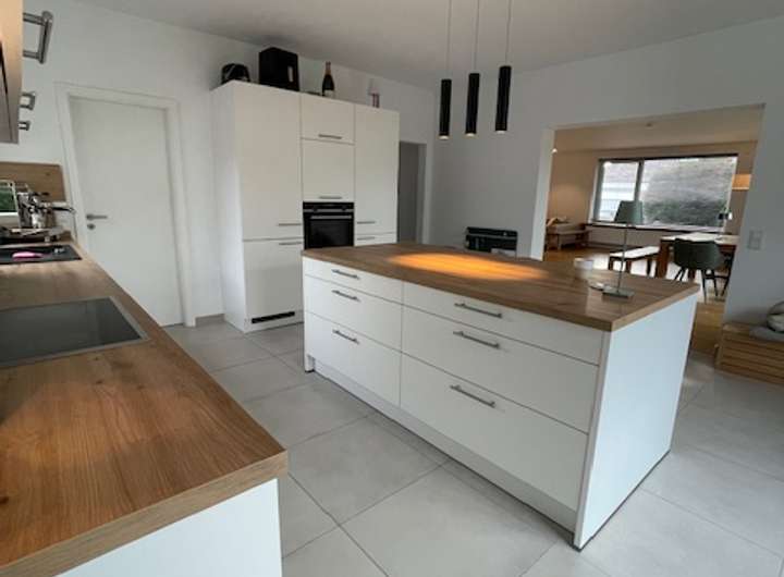 - Offene Küche mit moderner Einbauküche und elektrischen Geräten