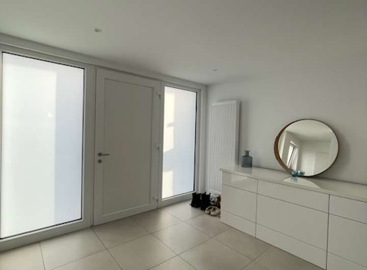 - Weiße Innentüren mit Edelstahlgriffen